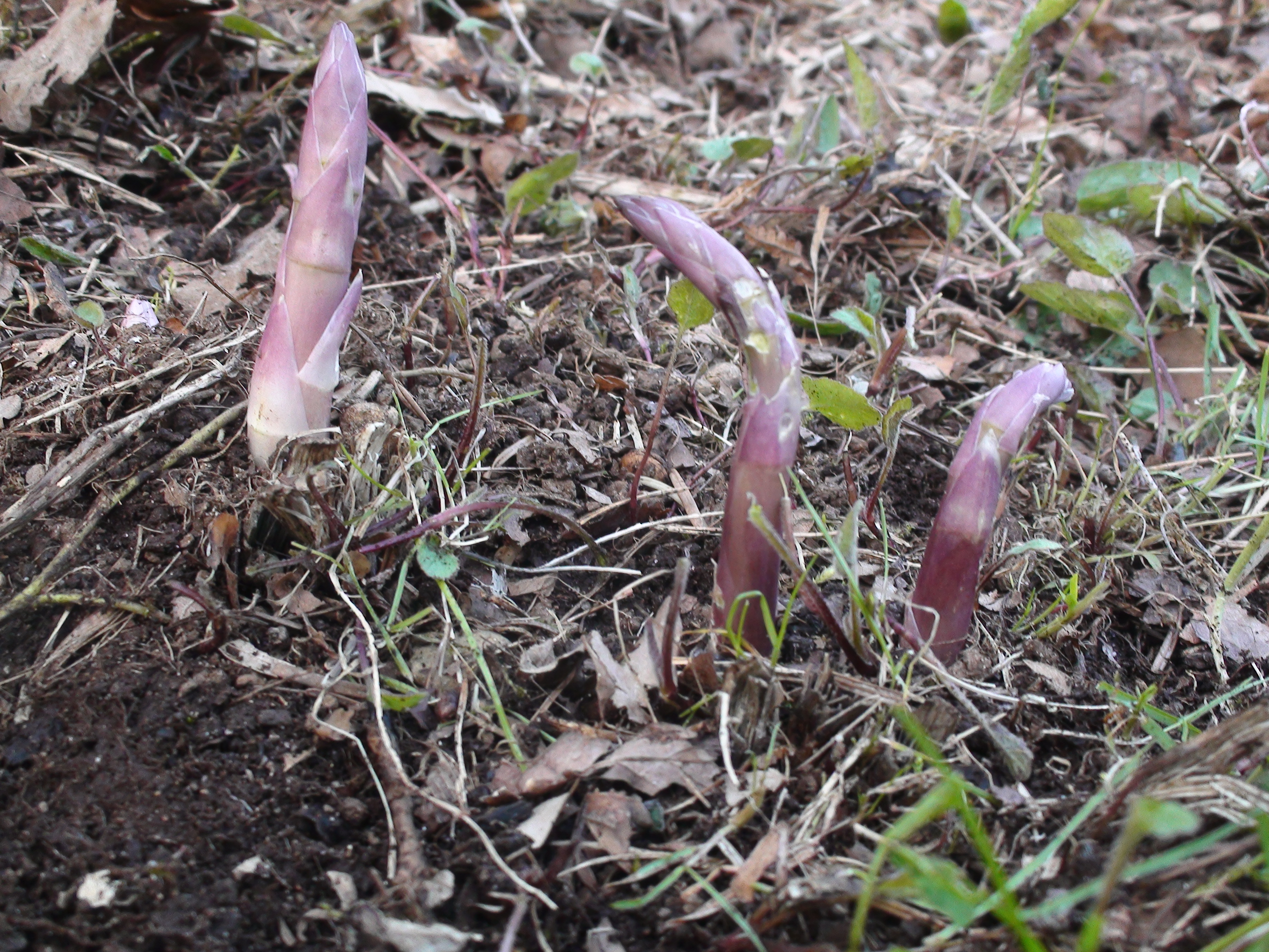 Og asparges har kommet opp av jorden – noen dager med varme og sol så er de spiselige.